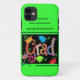 This case is for the I phone 5, also available in other styles.. With a bright green backround and a grad sign with caps, swirls, and confetti in different colours. All this on a black backround and a green ribbon around it. The case is top off with Congratulations and to and from that can be customised with your own information.