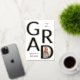 Modern gold foil GRAD Class of 2025 with photo graduation announcement. It features the text "GRAD" in gold foil, a photo in the letter D and stripes in black and white on the back.