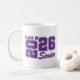 Grad senior ceramic coffee mug is shown in a purple and white colour design.