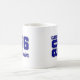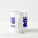 Grad senior ceramic coffee mug is shown in a blue and white colour design.