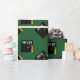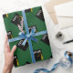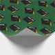 Creative graduation gift wrap and grad party decor featuring black and gold graduation cap on green background. To personalize edit text to add his or her name and the class year.