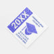 Add these custom graduation party paper napkins with your personalised text and a faux dark blue glitter design to your list of table décor essentials for a truly one of a kind celebration. The typography based design features bold white lettering with a dark navy blue drop shadow on a border of faux glitter on the left side of the napkin for the graduation year. Two more text templates in a simple navy blue font above and below the faux dark blue glitter cap and tassel design allow you to congratulate and celebrate your graduate and their outstanding achievement. From college or university to high school, these personalised graduation paper napkins with a touch of faux dark blue sparkle combine elegance with a touch of modern fun for the ultimate graduation party decorations.