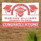 Easy to personalise, this custom graduation party banner features a faux red glitter cap and tassel design and five text templates for one of a kind party décor. This red and white CONGRATULATIONS banner has room for the graduation year on the largest mortarboard, your graduate's name, the high school and congratulations in bold white lettering with a dark red drop shadow on a faux glitter border at the bottom. From the half circle design at the top flanked by two matching faux glitter graduation caps in red to your custom text, this personalised graduation party banner will upgrade the decoration bling for your unique celebration.