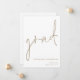 Grad Gold Script Graduation Announcement. Available digitally and printed. This simple design to announce the news of your graduate has informal set handwriting style script for the main header, grad, and easy to personalise typography to the bottom right hand side with your details and also your message on the back. Text and background Colours can be changed if you wish via the edit further option.