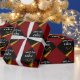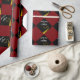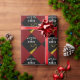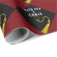 Graduation gift wrap or graduation party decoration featuring creative black cap with gold tassel on a maroon background. Edit text to add his or her name.