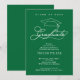 A graduation cap and the word "graduate" in an elegant white script PLUS the name and year of your graduate and your information on these green graduation party invitations. SEE ENTIRE COLLECTION of pre-done colours, paper plates, napkins, grad cap tops and more in our store.