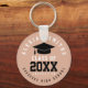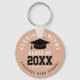 A stylish dusty-rose graduation design with the image of a black grad-hat, personalised with your name, class grad year and High School or University name...