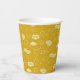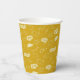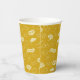 Celebrate a graduation with this festive yellow paper cup featuring caps, stars, and congratulatory phrases.