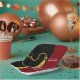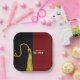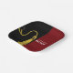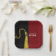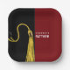 Creative graduation party plates featuring classic black and gold graduation cap on a maroon background. Edit text to add his or her name.