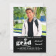 A black and white invitation with the word "grad" and a graduation cap motif.