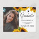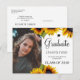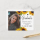 Floral elegant graduation announcement card featuring sunflowers bouquets and a black chic typography script over a clear white (changeable colour) background.+++++++++ Easy to personalise with your name, school and class, your custom text, and photo on both sides! +++++++++++ If you want it in any other specific colours, please contact the designer through the MESSAGE button below.