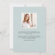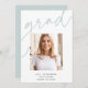 Customise this chic graduation announcement with a square photo overlaid on the word "GRAD" in soft pale aqua lettering, along with your name, school, and graduation year. Add an additional photo and a personal message to the back.