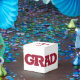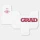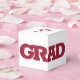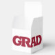 GRAD in bold crimson red lettering wraps around the front of these white 2" square graduation party favour boxes with your name and thank you message on the top.