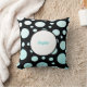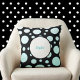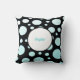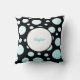 Personalise this fun funky modern polka-dots throw pillow with a Name or your own text within this border of blue and white gradient circles on black.