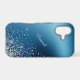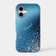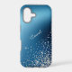This elegant phone case features a pretty metallic sky blue background with silver and pale pink confetti sprinkles and star shines on the bottom right third. Your name is in silver towards the top middle. A bit of tasteful sparkle without being overly glitzy.