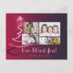Gradient Burgundy Pink Glitter Tree 5 Photos Holiday Postcard.