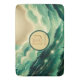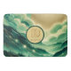 This design features a beautiful gradient of emerald and kelly green with shimmering glitter accents. Inspired by Chinese painting, it includes soft watercolor effects, a bright sunrise, and a glowing sun. A customisable monogram in the centre makes it personal and unique. Elegant and versatile for any product or occasion.