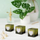 beautiful gradient green background with mustard grains at the top and thin lines twisted with ornaments on the two sides of the box.