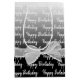 Happy Birthday text and white sheer bow on black to white gradient background.
