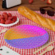 Neon Sprinkle birthday plate on a gradient background