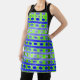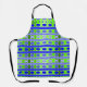 This apron has a geometric design of lines in shades of blue and green woven to make a plaid.