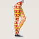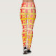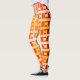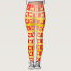 These leggings have a geometric design of lines in shades of red and yellow woven to make a plaid.