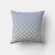 This pretty pillow features a pattern of polka dots in gradient colour from blue to silver grey. The dots are placed on a medium grey background. Both sides of the pillow have the same pattern. You may change the background colour from grey to anything you'd like!