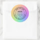Ideal for gifting a 4" scented candle with this gradient rainbow 3" round sticker. Printed in vibrant full color on glossy paper; matte is also available. Easily change or remove any text to make it yours using the Template provided. Six 3" stickers per sheet or twenty 1.5" stickers. This design will also fit the square shape. See "About This Product" for more information.