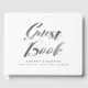 This landscape hardcover wedding guest book featuring a modern calligraphy font is printed in silver grey placed on a white background and will be fully customised with your name, wedding date / place and even a personal message or quote on the back.