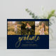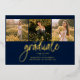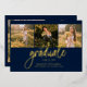 Graduation 4 Photo Collage Script Navy Blue Gold Foil Announcement for class of 2025. Easily customise this by changing the text and replacing the photos with yours. A modern and trendier way to announce your graduation this year!