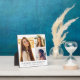 Elegant graduation keepsake photo plaque to celebrate the graduate featuring a three picture collage and his or her name, class year and school in modern typography.