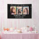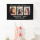 This custom graduation banner to celebrate your graduate features a photo collage of three photos on a black background. Above in black script it reads "Congratulations" and below "graduate 2023" with your name and school to personalise. Designed by artist Susan Coffey