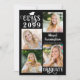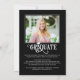 Announce your graduate's achievement with this modern photo collage graduation announcement featuring 5 pictures (4 on the front and 1 on the back) with a fancy lettering typography class year design accented by a graduation cap and modern calligraphy script for your graduate's name and school. CHANGES: All text font styles, colours, size and placement as well as the graduation cap graphic and background colours can be changed to school colours or coordinating colours to your images (shown in white on black). The back side has an optional custom text field to include additional information about your graduate (delete the sample text in that field if not desired). Also available as an instant digital downloadable file. ASSISTANCE: For help with design modification or personalisation, colour change or transferring the design to another product, contact the designer BEFORE ORDERING via the Zazzle Chat MESSAGE tab below or email makeitaboutyoustore@gmail.com.