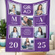 Graduate 6 Photo Collage Purple Graduation Fleece Blanket