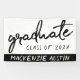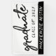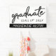 Modern graduation party template overlay with accents in a basic minimalist black and white palette. The design features a chic black hand-lettered brush script “graduate” typography on a white background along with the grad’s name and graduation year. Great way to honour your elementary, middle school, high school, or college grad! #bound #classof2019