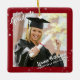 Graduate Brush Script Photo Editable Red Ceramic Ornament