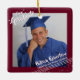 This graduation commemorative keepsake ceramic ornament style shown features two photos of the graduate...one on the front with their name, school and class year with a maroon or burgundy border and stars on the front and one full-bleed photo with the title CLASS OF "YEAR" on the back. Makes a thoughtful gift for any graduate. Note that other ornament styles may not offer back side printing. PHOTO TIP: Choose a photo with the subject in the middle and/or pre-crop your photo to a square shape BEFORE uploading. ASSISTANCE: For help with design modification/personalisation, colour change or transferring the design to another product, contact the designer BEFORE ORDERING via the Zazzle Chat MESSAGE tab or email at makeitaboutyoustore@gmail.com.