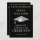 Graduate Celebration Party Gold and White Invitation. Gather friends and family to celebrate a special graduate. This card is designed in bright gold and white on a black background with a white grad cap accent. The front text includes: the graduate's name and Class of Year. The reverse text includes: the party details in gold and white on a black background with white grad cap accent. To personalise, simply insert your text details into our easy template, replacing the sample.