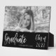Elegant Silver Look Typography on Black Background Graduate Class of 2021 Modern Graduation Keepsake Tabletop Plaque with Easel, Add Photo of Graduate, placeholder image by Valerie Elash Unsplash