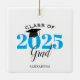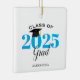This graduation Christmas ornament is a perfect gift for the class of 2025 graduate. The design features the year in light blue with a mortarboard graduation hat. Personalize with graduate's name.