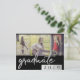 Stylish multi-photo horizontal graduation template overlay with 3 photos and accents in a silvery faux metallic chrome and black palette. The design features a chic hand-lettered brush script “graduate” typography and 3 pictures along with the grad’s name and graduation year. #bound #classof2019