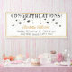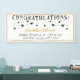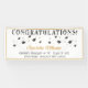 A Graduate Congratulations Banner with the Graduate's Name. This banner is designed with gold coloured trim, with grad caps in a white background. The text includes: Congratulations!, The Graduate's Name and Degree. To personalise simply insert your details into our template, replacing the sample text.