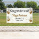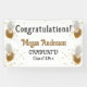 A Hanging Graduation Congratulations Banner designed with gold coloured text on a white background with gold and white balloons and sparkles. To personalise, simply replace the sample name with your details.