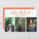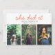 Graduate Cute She Did It Script Three Photos Coral Invitation