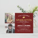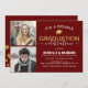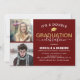 Double the celebration, double the fun! An elegant joint graduation invitation featuring a trendy burgandy background that can be changed to any colour, square insta style photos of the two graduates, a faux gold graduation cap and a modern double celebration template that is easy to personalise. On the reverse features a scattering of party gold confetti glitter.