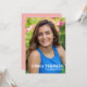 This design features a graduate graduation grad simple party, an elegant calligraphy script photo invite, for high school or college seniors, a stylish calligraphy script typography, a grad mortarboard mortar board cap, a class of year school name, for graduation photo picture invitations, a classic grad party fancy font, with school colour light blush peach pink theme, a classy graduation photo announcements
