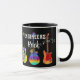 Celebrate your graduate engineer friends or family graduating their civil engineering, mechanical engineering or electrical engineering degrees A fun graduation gift Engineers Rock coffee mug with cool colourful psychedelic guitars and modern rock and roll typography. Unique electric guitars and acoustic guitar detailed illustrations in vibrant blue pink purple green blue yellow and orange on a black background. Original artwork by artist Catherine Sweetman