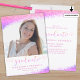 Graduate Fancy Script Pink Glitter Photo Invitation. Modern, girly graduation photo invitation featuring one picture accented with bright pink faux glitter overlay and fancy pink glitter calligraphy script typography on the front and your celebration details on the back. ASSISTANCE: For help with design modification or personalisation, transferring the design to another product or if you would like coordinating items, contact the designer BEFORE ORDERING via the Zazzle Chat MESSAGE tab or email makeitaboutyoustore@gmail.com.