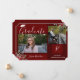 Simple and elegant two photo graduation announcement. Wine coloured background with style script font and watercolor roses. Red striped background. Easy to use template. Just change the text and upload your own graduation pictures. Monogram element on front of announcement.