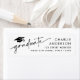 Return address labels featuring a graduation cap and the text "graduate" in a handwritten style font. To the right are template fields for your name and address.